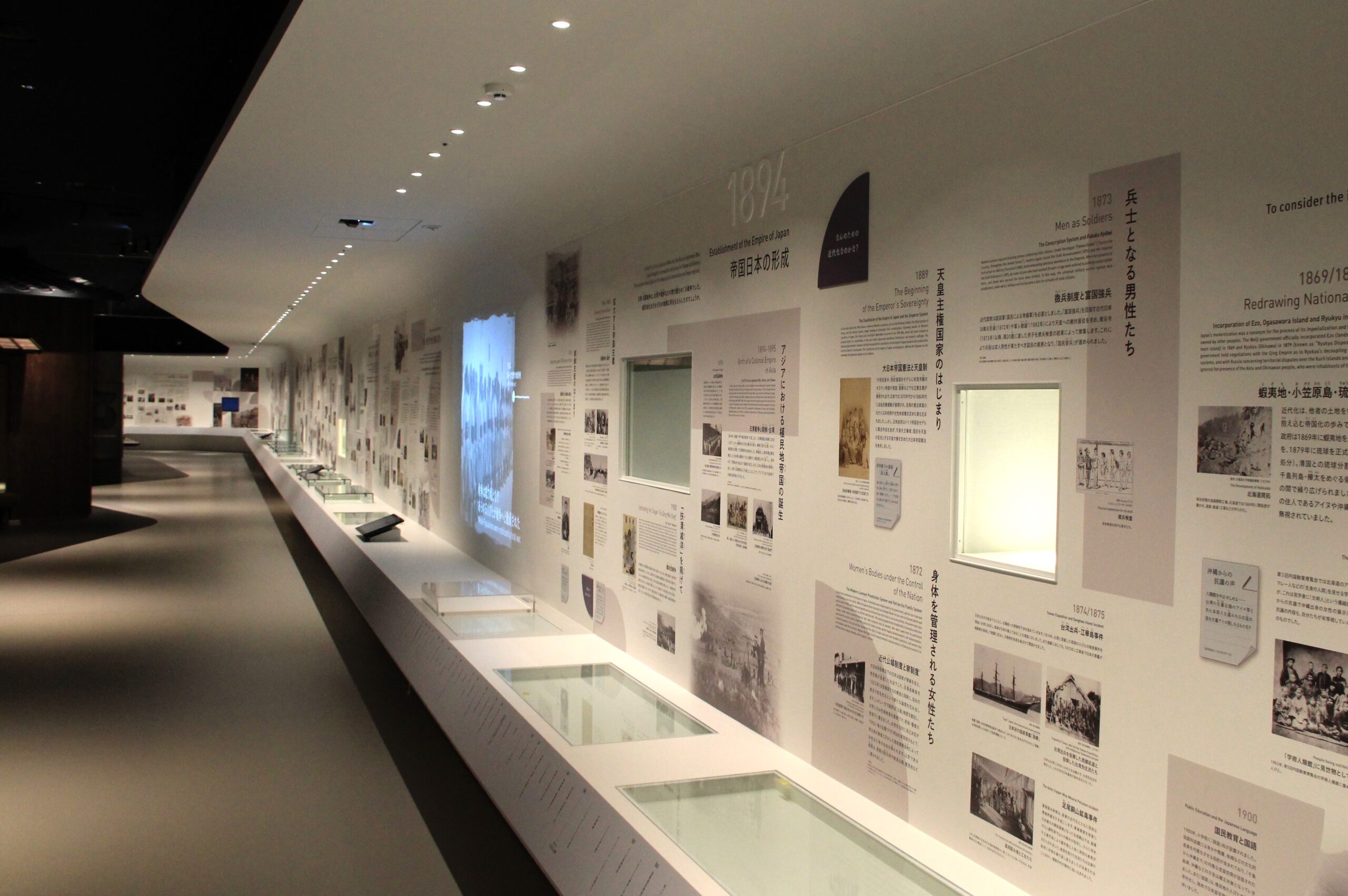 国際平和ミュージアムの常設展示(国際平和ミュージアム提供)国際平和ミュージアムの展示は、敵対関係がなぜあるのかを示している。平和博物館には被害者の側から被害を展示するものが多い中、国際平和ミュージアムは、被害と加害の両面を見つめている。きちんと歴史に向き合い、どのように敵対関係を克服しうるのか、考える材料を提供している。
