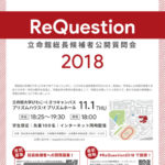 学生主催の立命館総長候補者公開質問会「ReQuestion 2018」を開催します 11月4日に迫った4年に1度の学校法人立命館「総長選挙」。 次期総長の任期は4年で、2019年1月から2022年末まで。今...