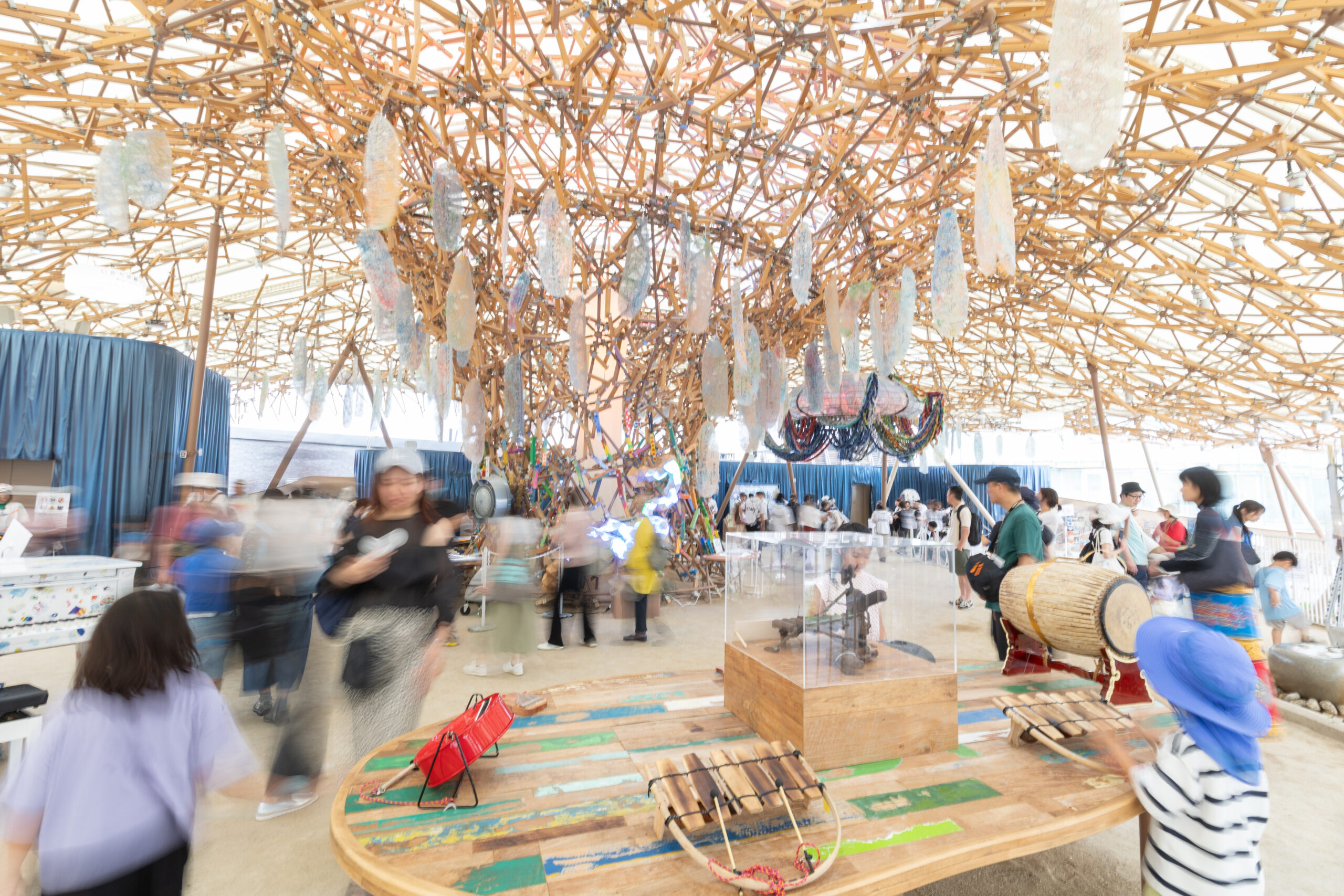 多くの人でにぎわうクラゲ館。手前は音で遊ぶエリア=大阪市此花区・夢洲中野さんに出展する学生への期待を聞いた。