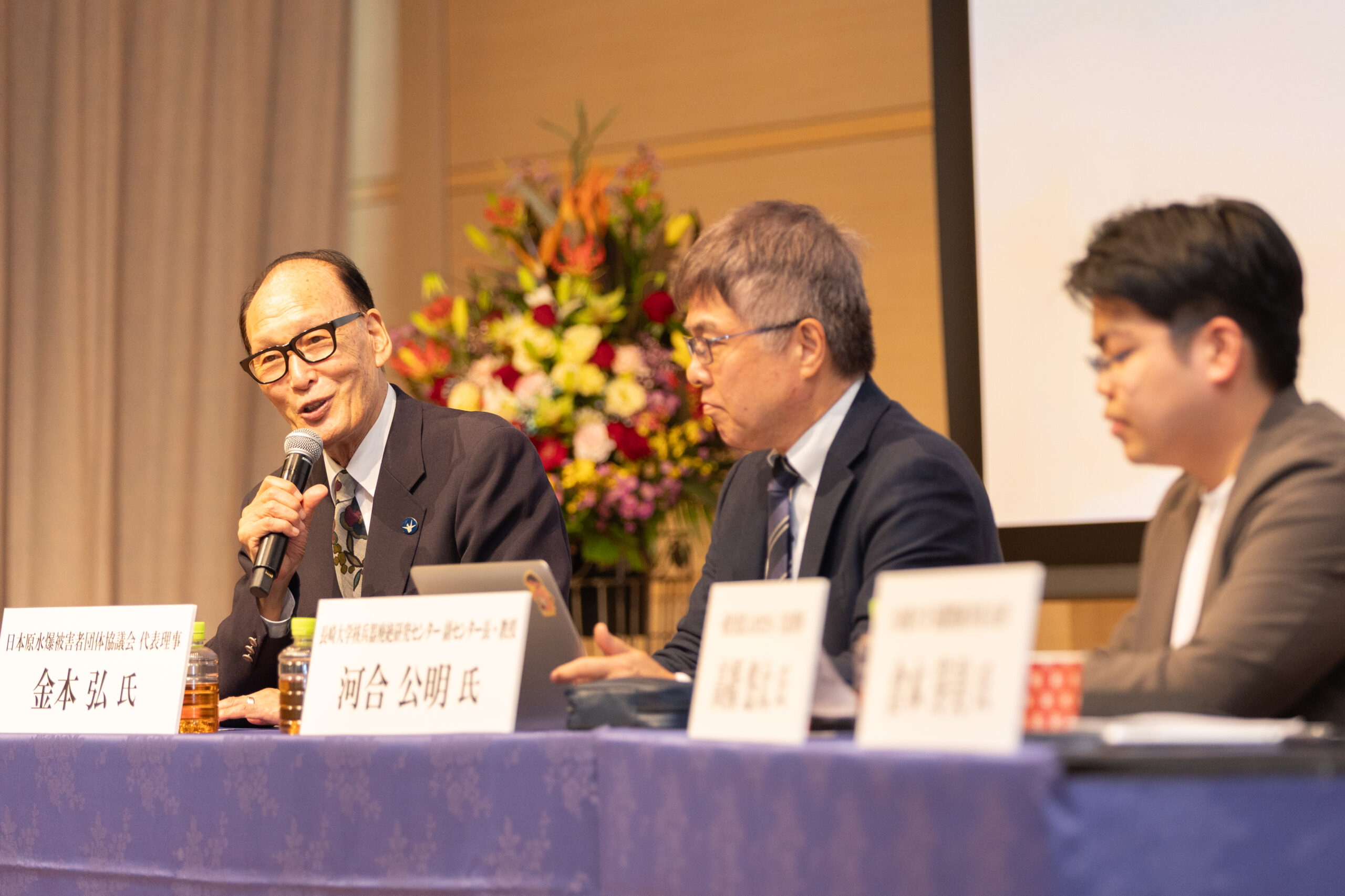 登壇した国際平和ミュージアムの君島館長=9月29日、京都市北区核廃絶を目指す一般社団法人「かたわら」の高橋悠太代表理事は「私自身は被爆者にはなれないが、被爆者の言葉を受け止めて国内外に伝えることはできる。被爆者の記憶を世界の記憶にしていくことがミッションだ」と話した。