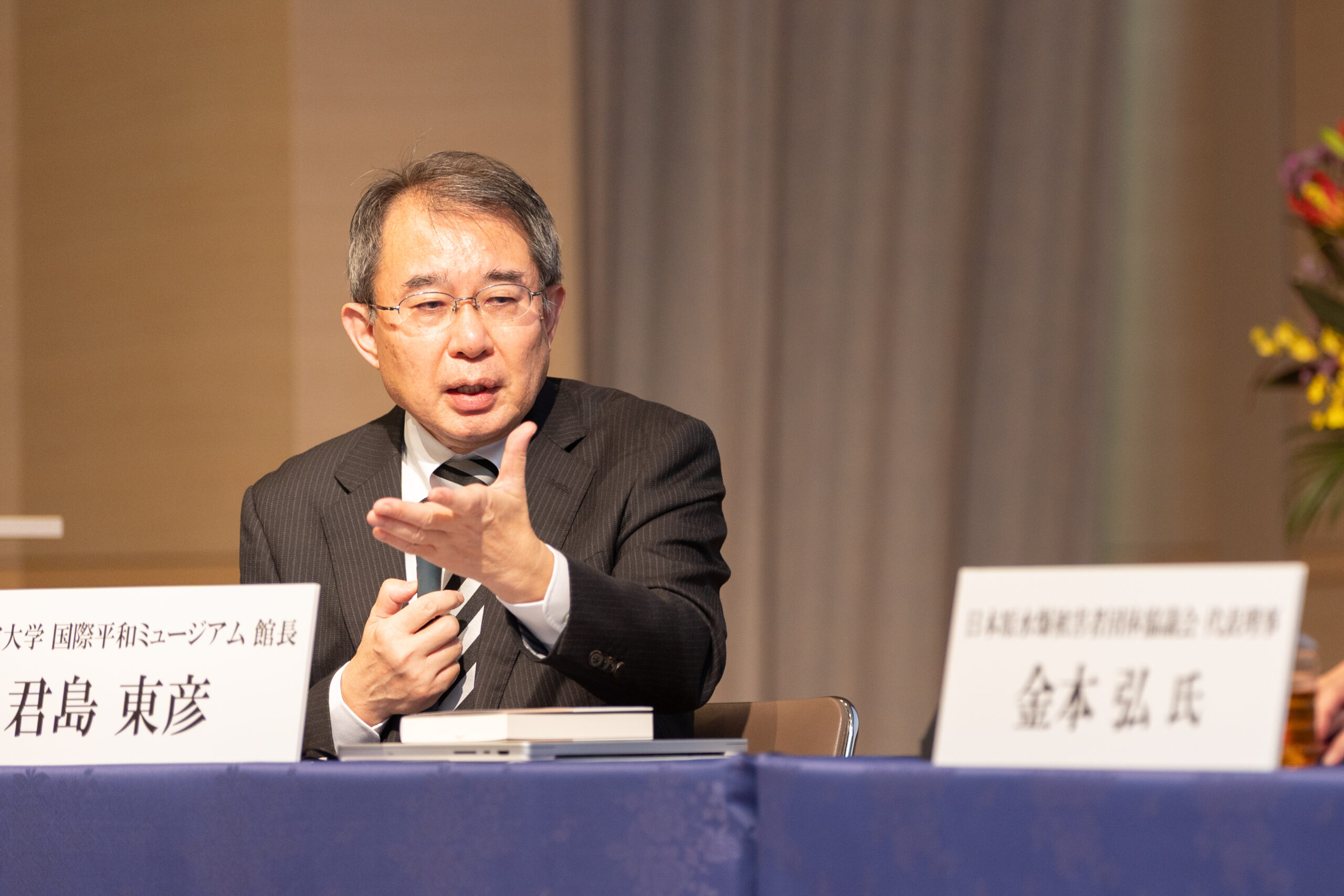 シンポジウムでは、基調講演に続きパネルセッションが開かれ、本学国際平和ミュージアムの君島東彦館長ら5人が登壇した。