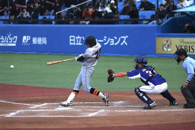 第56回明治神宮野球大会、大学の部の第1日・第3試合、立命館大対東京農業大北海道オホーツクが14日、明治神宮野球場(東京都新宿区)で行われ、本学は4―0で勝利し、神宮大会優勝に向けて駒を一つ進めた。エースの有馬伽久(産社3)が10者連続奪三振の快投を見せ、1972年に山口高志(関西大)が記録した8者連続三振の大会記録を更新した。