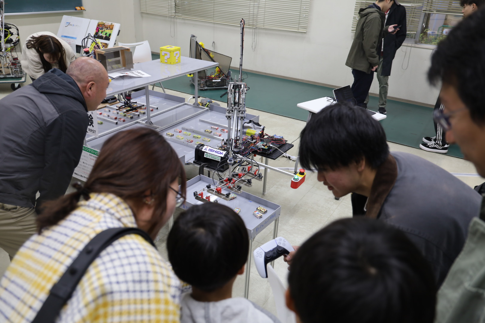 手作りのプラネタリウム会場の中に星々が映し出された同じく1階では、ロボット技術研究会(RRST)がロボットの操縦体験を行った。副会長の田代航介さん(理工3)は「実際にロボットに触れ、操縦することでロボットの楽しさに気付いてほしい」と話した。中台奨馬さん(理工3)は「一つのロボットを作るのに約100から150時間掛かる。人によってゆっくり作る人もいれば、早い人もいて個性が出て面白い」と笑顔で答えた。